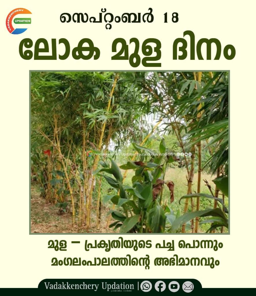 ഇന്ന് ലോക മുള ദിനം. പ്രകൃതിയോടുള്ള മനുഷ്യന്റെ അടുക്കും സഹജീവിതവും ഓർമിപ്പിക്കുന്ന ദിനം. കേരളത്തിന്റെ പച്ചപ്പിനും പരിസ്ഥിതി സൗന്ദര്യത്തിനും അവിഭാജ്യ ഘടകമായ മുളയുടെ സവിശേഷതകൾ അനവധിയാണ്. വടക്കഞ്ചേരി മംഗലംപാലയിലെ പുഴയോട് ചേർന്ന് നിലകൊള്ളുന്ന മുളങ്കോട്ടത്തുരുത്ത് അതിന്റെ മികച്ച ഉദാഹരണമാണ്.