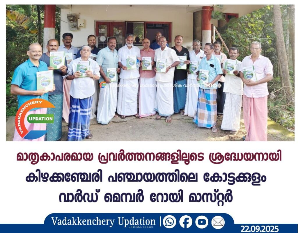 കിഴക്കഞ്ചേരി പഞ്ചായത്തിന്റെ ചരിത്രം തിരുത്തിക്കുറിച്ചുകൊണ്ട് പതിനൊന്നാം വാർഡായ കോട്ടക്കുളം വാർഡിന്റെ മെമ്പർ റോയി മാസ്റ്റർ കേരളത്തിന് ആകെ മാതൃകയാകുകയാണ്. അദ്ധ്യാപകനായ റോയ് മാസ്റ്റർ വാർഡിന്റെ മെമ്പറായി ചുമതല ഏറ്റ നാൾ മുതൽ എല്ലാ കാര്യങ്ങളിലും മറ്റു മെമ്പർമാരെക്കാൾ വ്യത്യസ്തനാവുകയാണ്.
