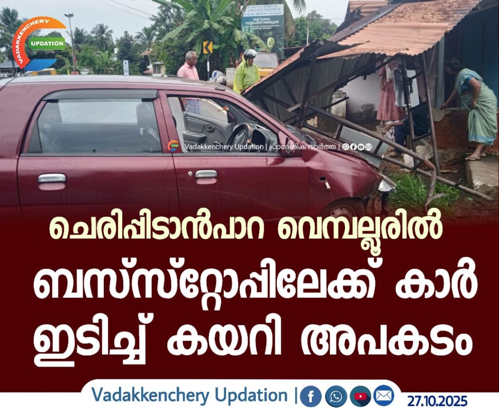 ചെരിപ്പിടാൻപാറ വെമ്പല്ലൂരിൽ ബസ്സ്റ്റോപ്പിലേക്ക് കാർ ഇടിച്ച് കയറി അപകടം
