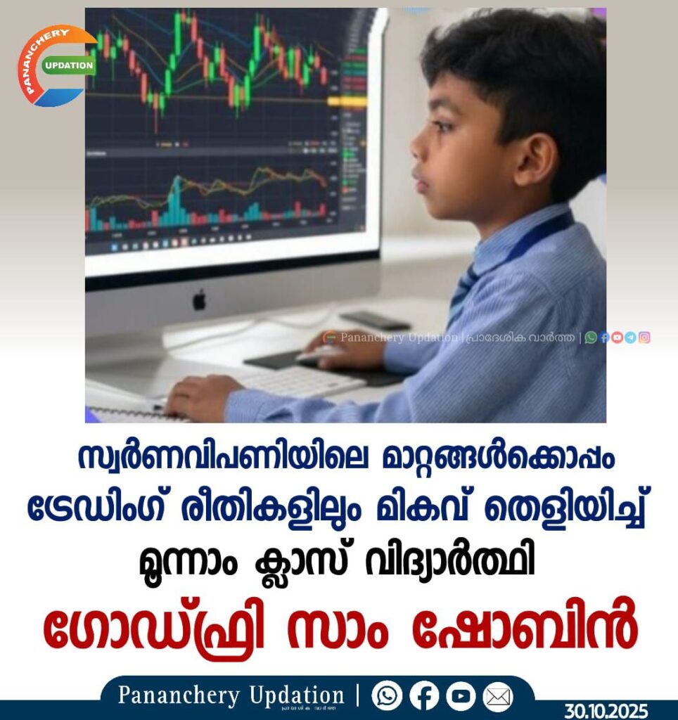 സ്വർണവിപണിയിലെ മാറ്റങ്ങൾക്കൊപ്പം ട്രേഡിംഗ് രീതികളിലും മികവ് തെളിയിച്ച് മൂന്നാം ക്ലാസ് വിദ്യാർത്ഥി ഗോഡ്ഫ്രി സാം ഷോബിൻ