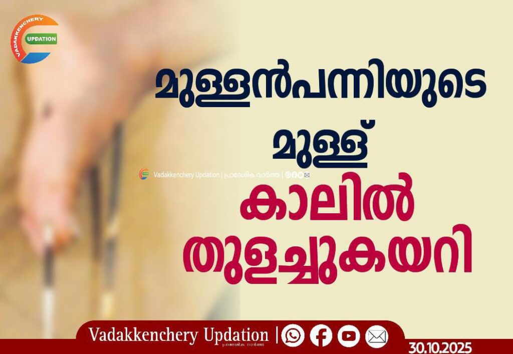 തട്ടിയതോടെ ബെക്കിൽനിന്ന് വീണു. പാദത്തിൽ മുള്ളൻപന്നിയുടെ മുള്ളുകൾ തുളച്ചുകയറി. കാൽപാദത്തിലേക്ക് ആഴ്ന്നിറങ്ങിയ മുള്ളുകൾ നെന്മാറ സ്വകാര്യ ആശുപത്രിയിലെത്തിച്ചാണ് പുറത്തെടുത്തത്. സംഭവത്തിൽ വനംവകുപ്പിൽ പരാതി നൽകി. നെന്മാറ ഒലിപ്പാറ പാതയിൽ മിക്ക സമയങ്ങളിലും വന്യമൃഗങ്ങൾ കാടിറങ്ങിവരുന്നത് മൂലം ഇതിലൂടെയുള്ള രാത്രിയാത്ര പലപ്പോഴും