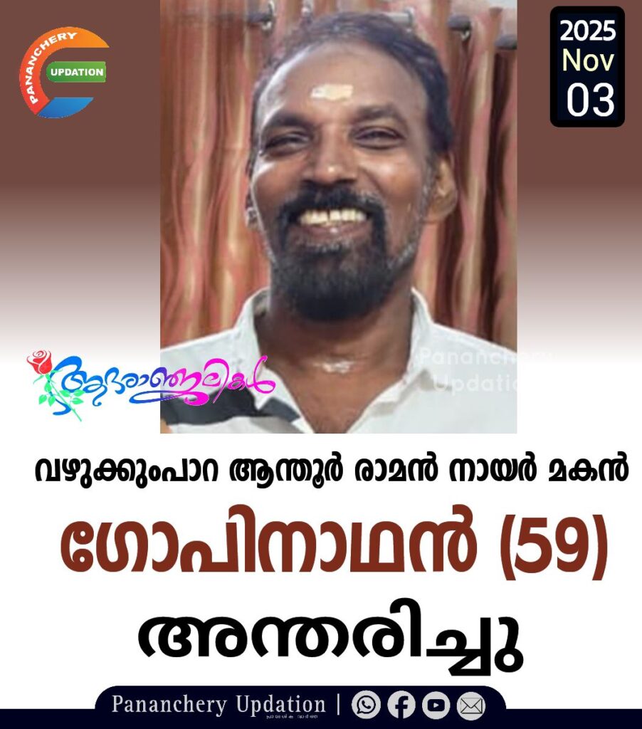 വഴുക്കുംപാറ ആന്തൂർ രാമൻ നായർ മകൻ ഗോപിനാഥൻ (59) അന്തരിച്ചു