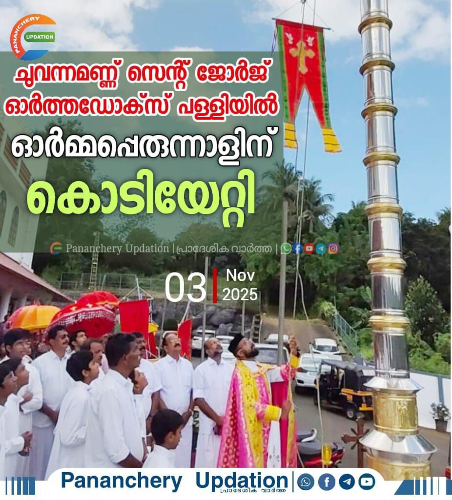 ചുവന്നമണ്ണ് സെന്റ് ജോർജ് ഓർത്തഡോക്സ് പള്ളിയിൽ ഓർമ്മപ്പെരുന്നാളിന് കൊടിയേറ്റി