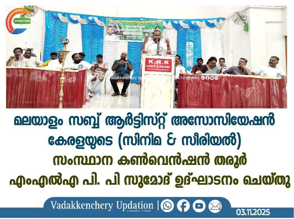 മലയാളം സബ്ബ് ആർട്ടിസ്റ്റ് അസോസിയേഷൻ കേരളയുടെ (സിനിമ& സീരിയൽ) സംസ്ഥാന കൺവെൻഷൻ തരൂർ എംഎൽഎ പി. പി സുമോദ് ഉദ്ഘാടനം ചെയ്തു