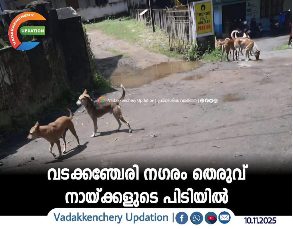 ഭീതി ജനിപ്പിച്ച് വടക്കഞ്ചേരി നഗരം തെരുവ് നായ്ക്കളുടെ പിടിയിൽ.