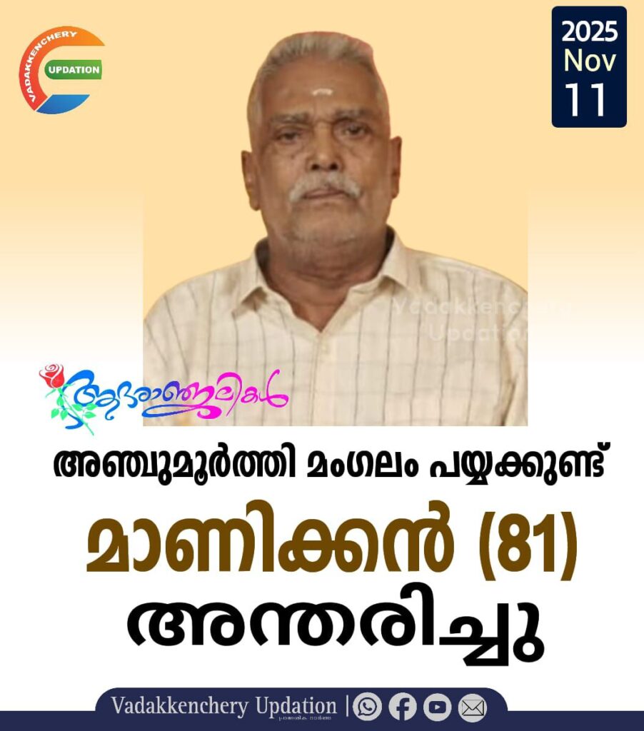 മാണിക്കൻ (81) അന്തരിച്ചു.
