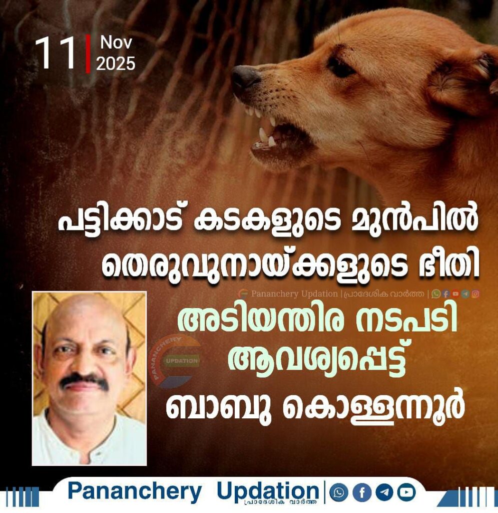 കഴിഞ്ഞ ദിവസം പട്ടിക്കാട് ഭാഗത്തെ ഒരു കടയുടെ സമീപം ഒരു തെരുവുനായ പെറ്റു. പതിനൊന്ന് കുഞ്ഞുങ്ങളാണ് ഇതിലുണ്ടായത്. ഇതോടെ ആ ഭാഗത്ത് ആളുകൾക്ക് നടന്ന് കടക്കാനുപോലും കഴിയാത്ത അവസ്ഥയാണ് അടിയന്തിര നടപടി ഉണ്ടാകണമെന്നാണ് വ്യാപാരി വ്യാവസായി പ്രസിഡൻറ് ബാബു കൊള്ളന്നൂർ ആവശ്യപ്പെടുന്നത്