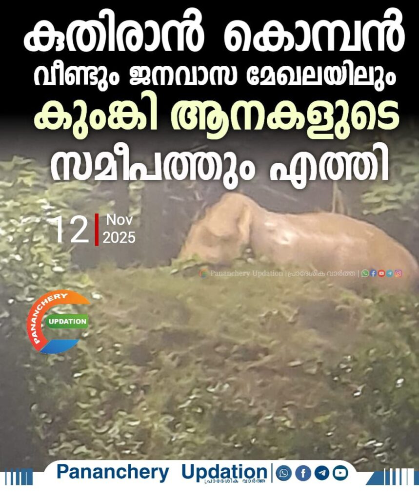 കുതിരാൻ കൊമ്പൻ വീണ്ടും ജനവാസ മേഖലയിലും കുംങ്കി ആനകളുടെ സമീപത്തും എത്തി