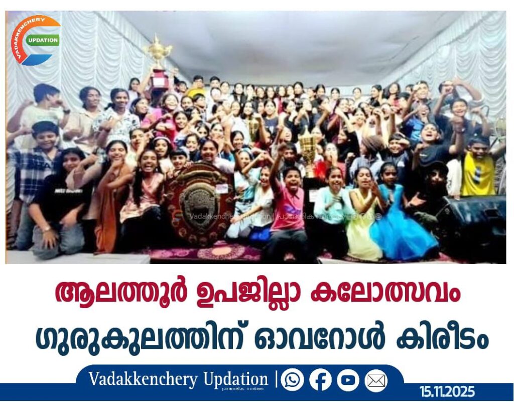 ഗവ.ഹയർ സെക്കൻഡറി സ്കൂളിൽ നടന്ന ആലത്തൂർ ഉപജില്ലാ കലോത്സവത്തിൽ 630 പോയിൻ്റുമായി ആലത്തൂർ ബിഎസ്എസ് ഗുരുകുലം ഹയർ സെക്കൻഡറി സ്കൂൾ ഓവറോൾ കിരീടം ചൂടി. 502 പോയിൻ്റുമായി മംഗലംഡാം ലൂർദ് മാതാ ഹയർ സെക്കൻഡറി സ്കൂൾ രണ്ടാം സ്ഥാനത്തെത്തി. 445 പോയിന്റ് നേടിയ വടക്കഞ്ചേരി ചെറുപുഷ്പം ഗേൾസ് ഹയർ സെക്കൻഡറി സ്കൂൾ മൂന്നാം സ്ഥാനവും 412 പോയിന്റ് നേടിയ ചിറ്റിലഞ്ചേരി എംഎൻ കെഎം ഹയർ സെക്കൻഡറി സ്കൂൾ നാലാം സ്ഥാനവും നേടി. സമാപന സമ്മേളനത്തിൽ എഇഒ ഡി.സൗന്ദര്യ സമ്മാനവിതരണം നടത്തി.