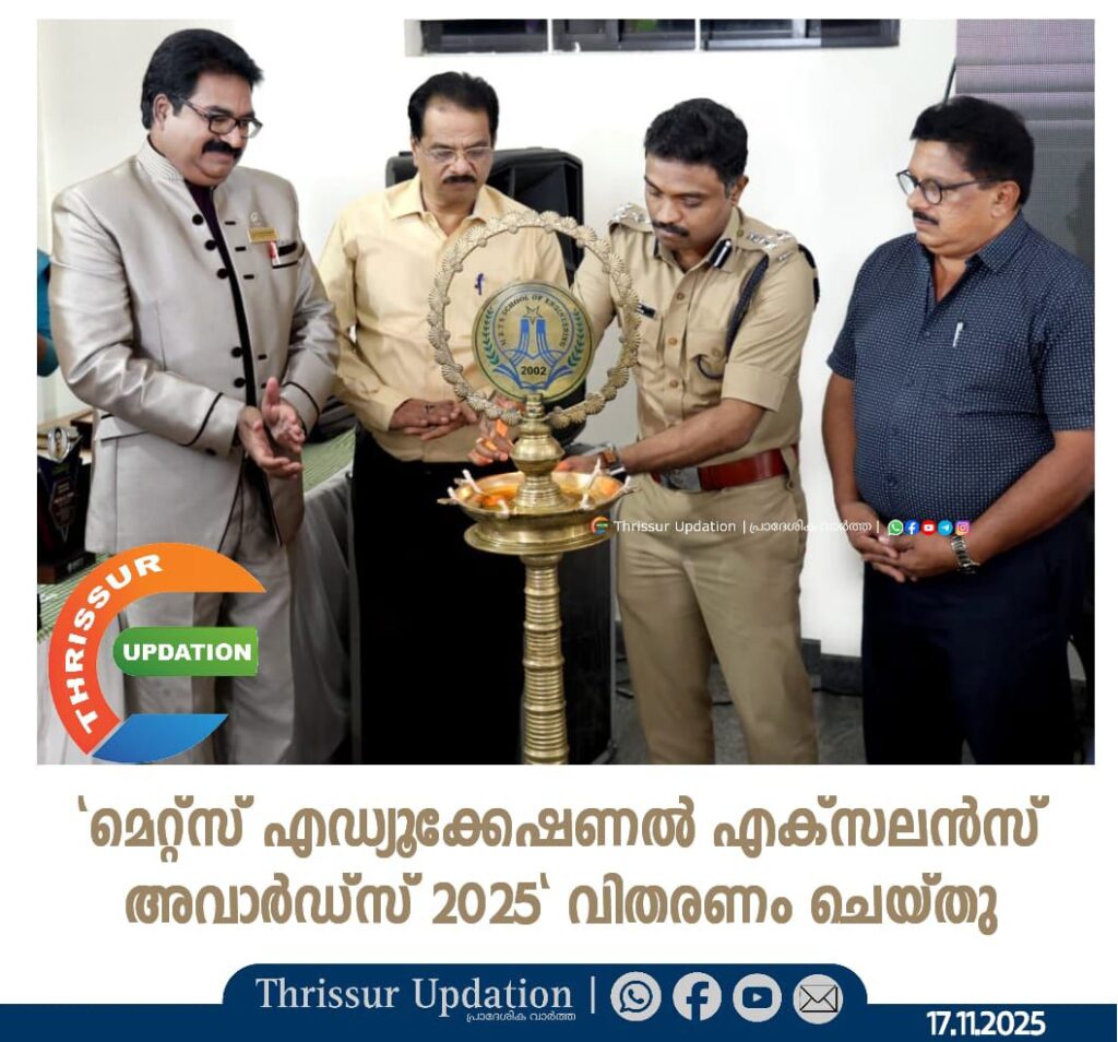 ‘മെറ്റ്സ് എഡ്യൂക്കേഷണൽ എക്സലൻസ് അവാർഡ്സ് 2025’ മെറ്റ്സ് ഗ്രൂപ്പ് ഓഫ് ഇൻസ്റ്റിറ്റ്യൂഷൻസ് മീഡിയ ഹാളിൽ നടന്നു. വൈകിട്ട് 2 മണിക്ക് ആരംഭിച്ച ചടങ്ങ് വിദ്യാഭ്യാസ മേഖലയിലെ മികവുറ്റ പ്രവർത്തനങ്ങൾ കാഴ്ചവെച്ചവരേയും നേട്ടങ്ങൾ കൈവരിച്ചവരേയും ആദരിക്കുന്നതായിരുന്നു.