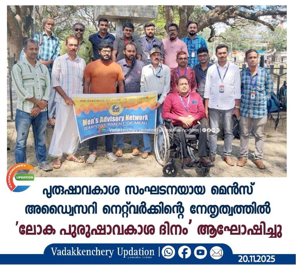 ലോക പുരുഷാവകാശ ദിനത്തിനോടനുബന്ധിച്ചു ‘മെൻസ് അഡ്വൈസറി നെറ്റ്വർക്ക്’ എന്ന പുരുഷാവകാശ സംഘടനയുടെ നേതൃത്വത്തിൽ ‘ലോക പുരുഷാവകാശ ദിനം’ പാലക്കാട് കോട്ട മൈതാനത്തുവെച്ചു വിപുലമായി ആഘോഷിച്ചു. പരിപാടി, വോയിസ് ഓഫ് ഡിസേബിൾ എന്ന കൂട്ടായ്മയുടെ സംസ്ഥാന പ്രെസിഡന്റും, മെൻസ് അഡ്വൈസറി നെറ്റ്വർക്കിന്റെ സംസ്ഥാന പ്രസിഡന്റുമായ അബ്ദുൾ നാസ്സിർ മനയിൽ ഉദ്ഘാടനം ചെയ്തു. തുടർന്ന് പ്രസ്തുത ചടങ്ങിൽ വെച്ച് അബ്ദുൾ നാസ്സിർ മനയിൽ, വിവരാവകാശ പ്രവർത്തകനും മെൻസ് അഡ്വൈസറി നെറ്റ് വർക്കിന്റെ പാലക്കാട് ജില്ലാ സെക്രട്ടറി ഇൻഷാദ് ഇസാക്ക് എന്നിവരെ പൊന്നാട അണിയിച്ചു ആദരിച്ചു. സംഘടനയുടെ സംസ്ഥാന സെക്രട്ടറി അസ്സീസ്,പറപ്പള്ളി സംസ്ഥാന ട്രെഷറർ ലിതീഷ് T. L ലോഹിതാക്ഷൻ, കോഴിക്കോട് ജില്ലാ സെക്രട്ടറി മുസ്തഫ മാങ്കായി, പാലക്കാട് പ്രസിഡന്റ് സന്തോഷ് കുമാർ തുടങ്ങിയവർ പ്രസംഗിച്ചു