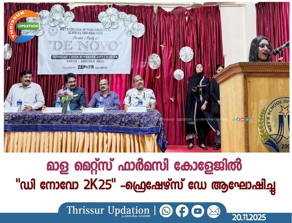 തൃശൂർ, മാള, മെറ്റ്സ് കോളേജ് ഓഫ് ഫാർമസ്യൂട്ടിക്കൽ സയൻസസ് ആന്റ് റിസർചിൽ “ഡി നോവോ 2K25”: ഫ്രെഷേഴ്സ് ഡേ ആവേശപൂർവ്വം ആഘോഷിച്ചു. പുതുതായി ചേർന്ന വിദ്യാർത്ഥികളെ വരവേൽക്കുന്നതിനായി വിവിധ പരിപാടികളോടെയാണ് ചടങ്ങുകൾ അരങ്ങേറിയത്.