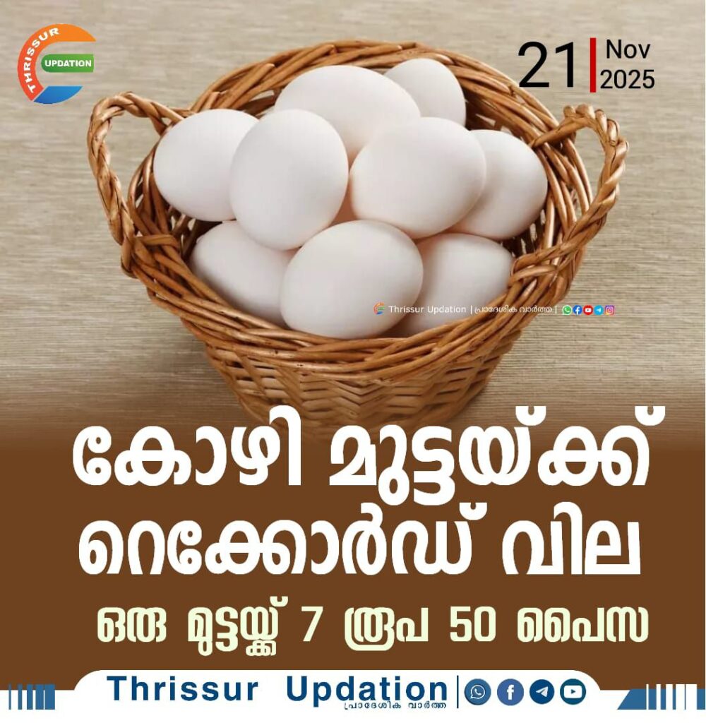 കോഴി മുട്ടയ്ക്ക് റെക്കോർഡ് വില ; ഒരു മുട്ടയ്ക്ക് 7 രൂപ 50 പൈസ