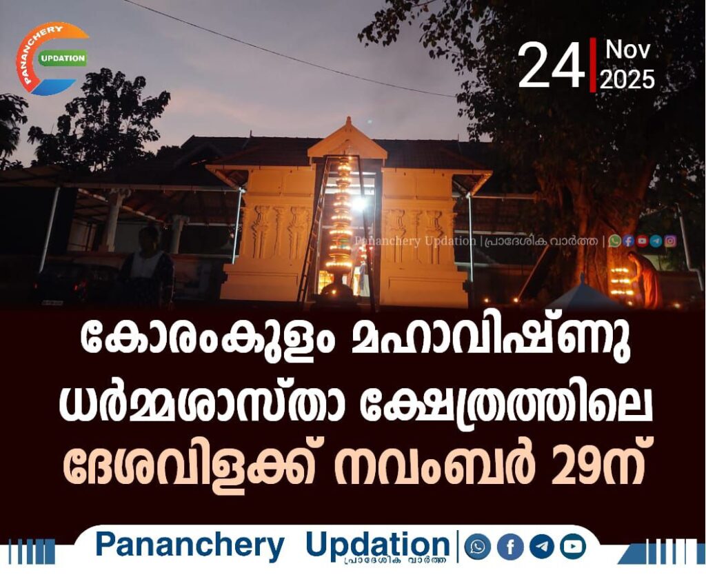 കോരംകുളം മഹാവിഷ്ണു ധർമ്മശാസ്താ ക്ഷേത്രത്തിലെ ദേശവിളക്ക് മഹോത്സവം നവംബർ 29 ശനിയാഴ്ച നടക്കും. വൈകീട്ട് 7 മണിക്ക് ഉപാസന അയ്യപ്പൻ വിളക്ക് സംഘത്തിന്റെ നേതൃത്വത്തിലുള്ള എഴുന്നള്ളിപ്പ് കല്ലിടുക്ക് ദുർഗ്ഗാഭഗവതി ക്ഷേത്രത്തിൽ നിന്നും ആരംഭിച്ച് 11 മണിക്ക് ക്ഷേത്രത്തിൽ എത്തിചേരും. രാത്രി 8 മണി മുതൽ മഹാപ്രസാദ ഊട്ട് ആരംഭിക്കും. തന്ത്രി പാലക്കാട്ടിരി നാരായണൻ നമ്പൂതിരിപാടിന്റെയും മേൽശാന്തി ശക്തി പ്രസാദ് തിരുമേനിയുടെയും കാർമികത്വത്തിൽ വിശേഷാൽ പൂജകളും നിറമാല, ചുറ്റുവിളക്ക് എന്നിവയും ഉണ്ടായിരിക്കും എന്ന് ഭാരവാഹികൾ അറിയിച്ചു.