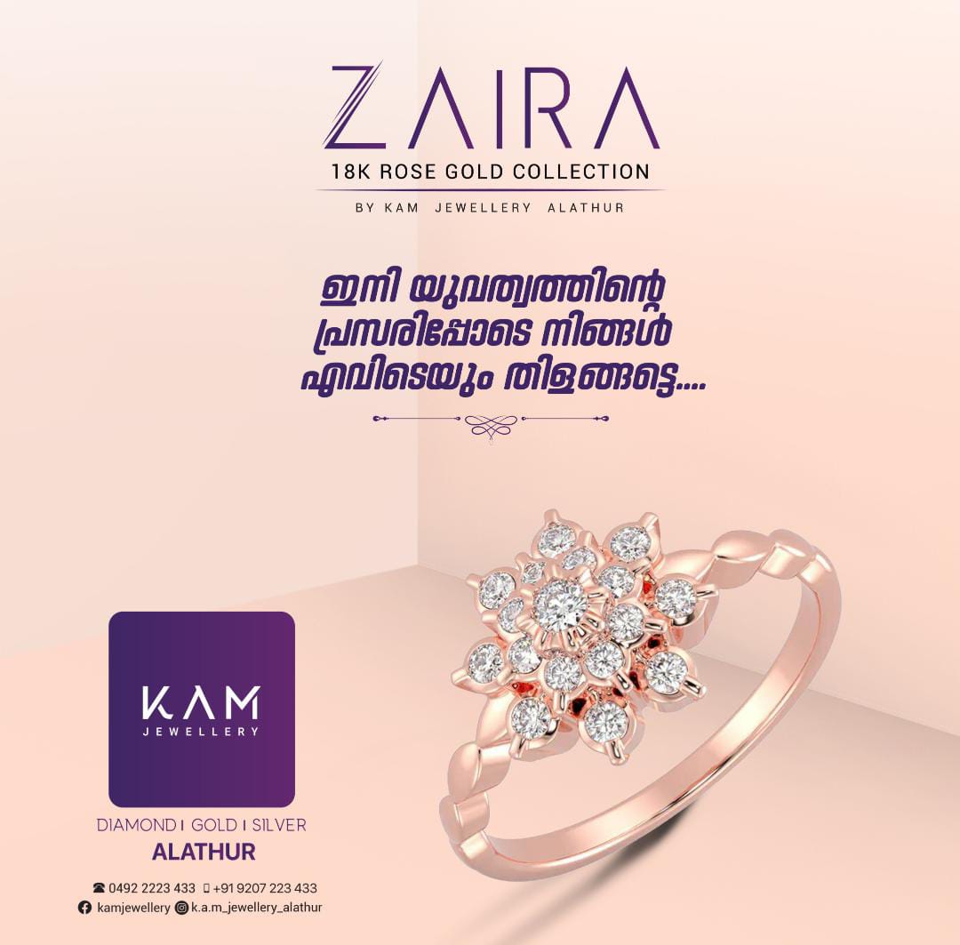 KAM Jewellery Alathur നിങ്ങൾക്കായി അവതരിപ്പിക്കുന്നു ZAIRA – 18K ROSE GOLD COLLECTION