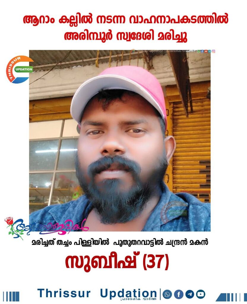 ആറാം കല്ലിൽ നടന്ന വാഹനാപകടത്തിൽ അരിമ്പൂർ സ്വദേശി മരിച്ചു