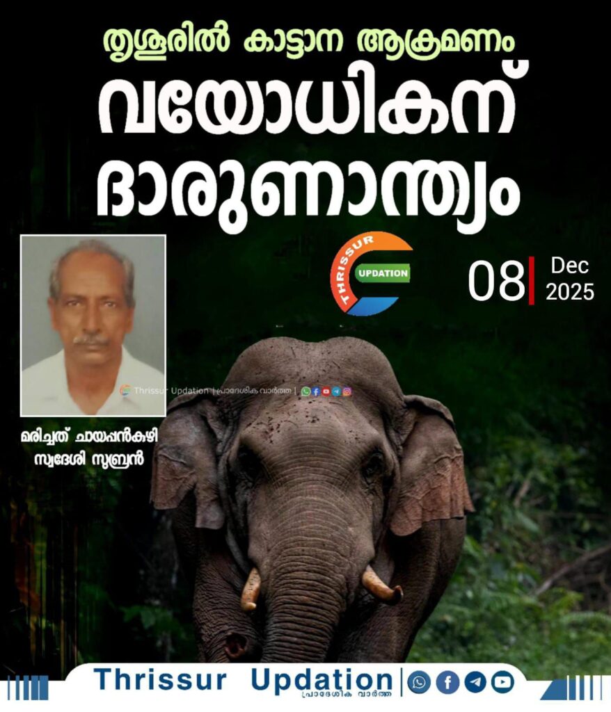 തൃശൂരിൽ കാട്ടാന ആക്രമണം; വയോധികന് ദാരുണാന്ത്യം