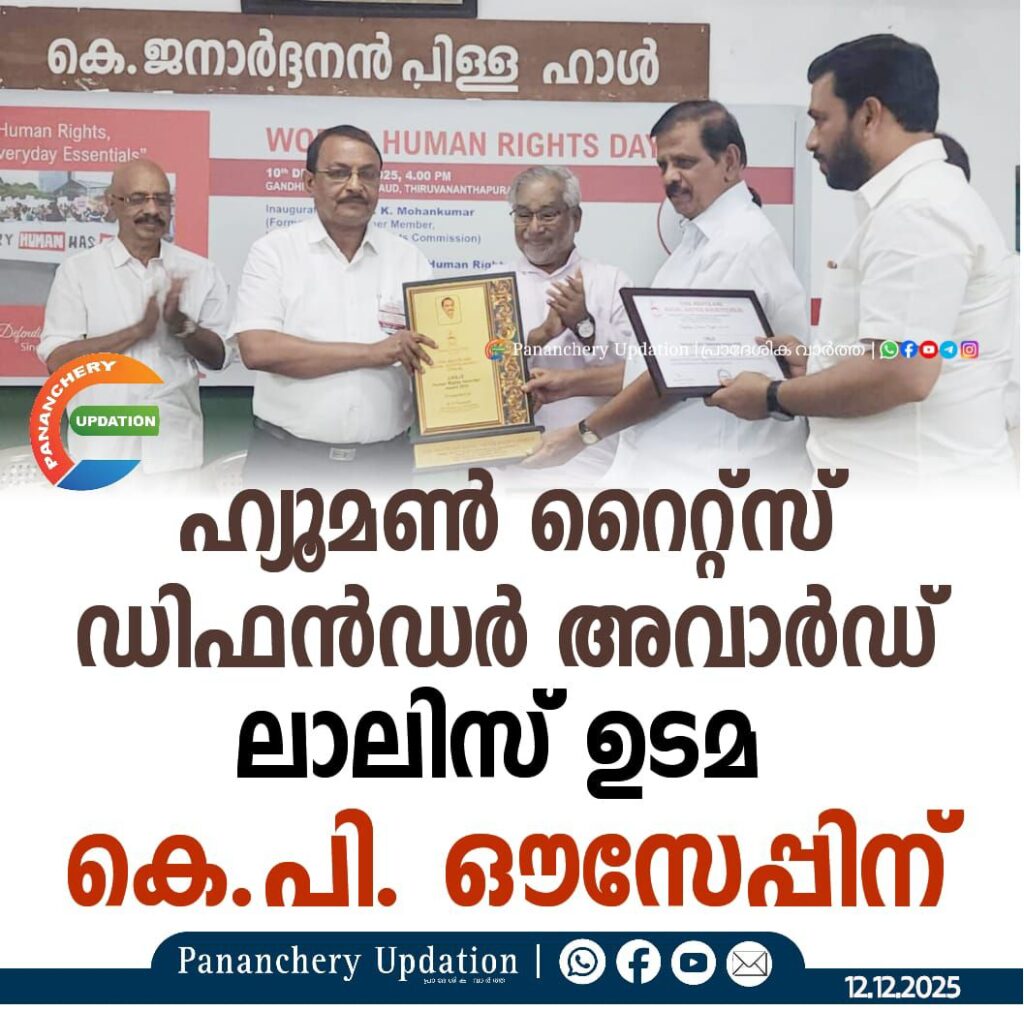 ഹ്യൂമൺ റൈറ്റ്സ് ഡിഫൻഡർ അവാർഡ് ലാലീസ് ഉടമ കെ.പി. ഔസേപ്പിന്