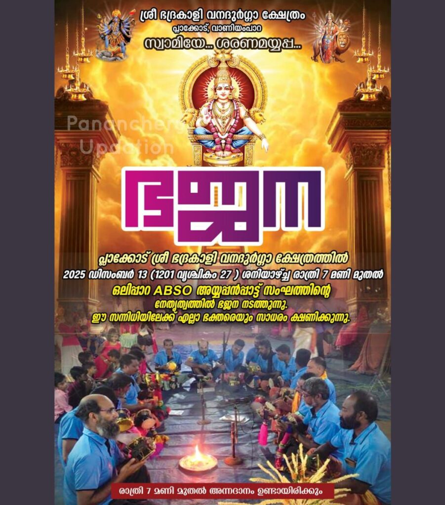 ഭജനയിൽ എല്ലാ ഭക്തരെയും ക്ഷണിക്കുന്നതായി ഭാരവാഹികൾ അറിയിച്ചു