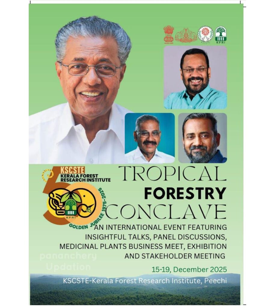 കേരള വന ഗവേഷണ സ്ഥാപനത്തിൽ അഞ്ച് ദിവസത്തെ ട്രോപ്പിക്കൽ ഫോറസ്ട്രി കോൺക്ലേവിന് 2025 ഡിസംബർ 15 ന് തിങ്കളാഴ്ച തുടക്കമാകും, ഡിസംബർ 19 വെള്ളിയാഴ്ച യാണ് സമാപനം. പീച്ചിയിലെ സ്ഥാപനത്തിന്റെ പ്രധാന കാമ്പസിലാണ് ഉഷ്ണമേഖലാ വനപരിപാലനം എന്നവിഷയത്തിൽ അന്താരാഷ്ട്ര ഗവേഷകർ സംബന്ധിക്കുന്ന മൂന്നു ദിവസത്തെ പ്രബന്ധവാതരണവും ചർച്ചകളും സംഘടിപ്പിക്കുന്നത്. കൂടാതെ നൂറിലധികം ഗവേഷകർ തങ്ങളുടെ ഗവേഷണ ഫലങ്ങൾ അവതരിപ്പിക്കും. വാങ്ങവേഷണസംബന്ധിയായ ഉപകരണങ്ങൾ സാങ്കേതിക സംവിധാനങ്ങൾ എന്നിവയുടെ പ്രദര്ശനവും, തെന്നിന്ത്യയിലെ ഔഷധ സസ്യ കർഷകരുടെ കൂടിച്ചേരൽ, വന സംരക്ഷണ ഗവേഷണ സ്ഥാപനങ്ങളുടെ പ്രതിനിധികളുടെ യോഗം, പ്രസിദ്ധീകരങ്ങളുടെയും, പുതിയ ഗവേഷണ സംവിധാനങ്ങളുടെ ഉത്ഘാടനം എന്നിവയും വന ഗവേഷണത്തിലും സംരക്ഷണത്തിലുമുള്ള KFRI-യുടെ പ്രതിബദ്ധതയുടെ പ്രതീകമായി ആഘോഷങ്ങളുടെ ഭാഗമായി 50 വർഷത്തെ സുവർണ്ണ ജൂബിലി (1975-2025) ആഘോഷങ്ങൾക്ക് പരിസമാപ്തി കുറിച്ചുകൊണ്ട് നടക്കും.
