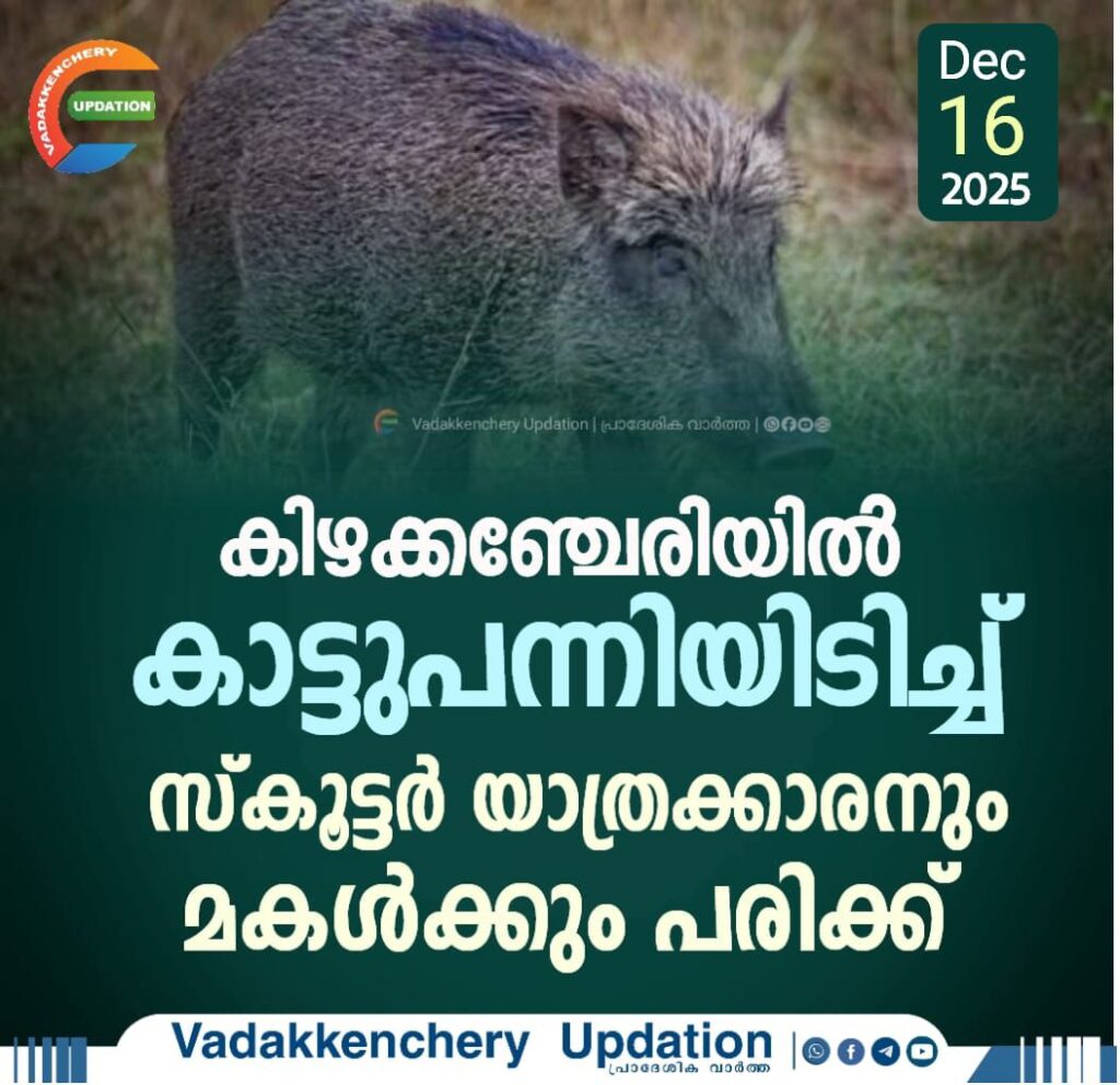 കിഴക്കഞ്ചേരിയില് കാട്ടുപന്നിയിടിച്ച് സ്കൂട്ടര് യാത്രക്കാരനും മകള്ക്കും പരിക്ക്