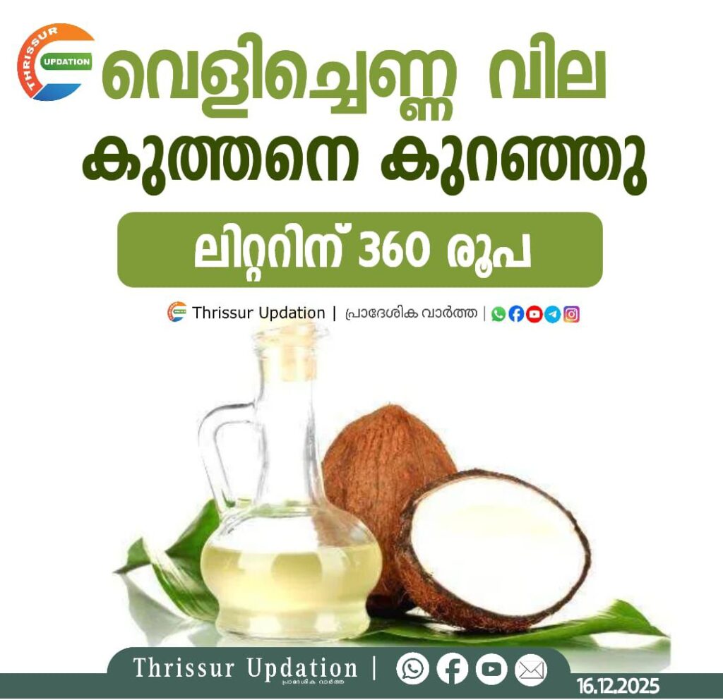 ഓണത്തിനു തൊട്ടുമുൻപു ലീറ്ററിനു 450 രൂപവരെയെത്തിയ വെളിച്ചെണ്ണ വില കുത്തനെ കുറഞ്ഞു. ലീറ്ററിന് 360 രൂപയാണ് ഇപ്പോൾ വില. കഴിഞ്ഞ ആഴ്ച ഇത് 400 രൂപയായി രുന്നു. തമിഴ്നാട്, കർണാടക