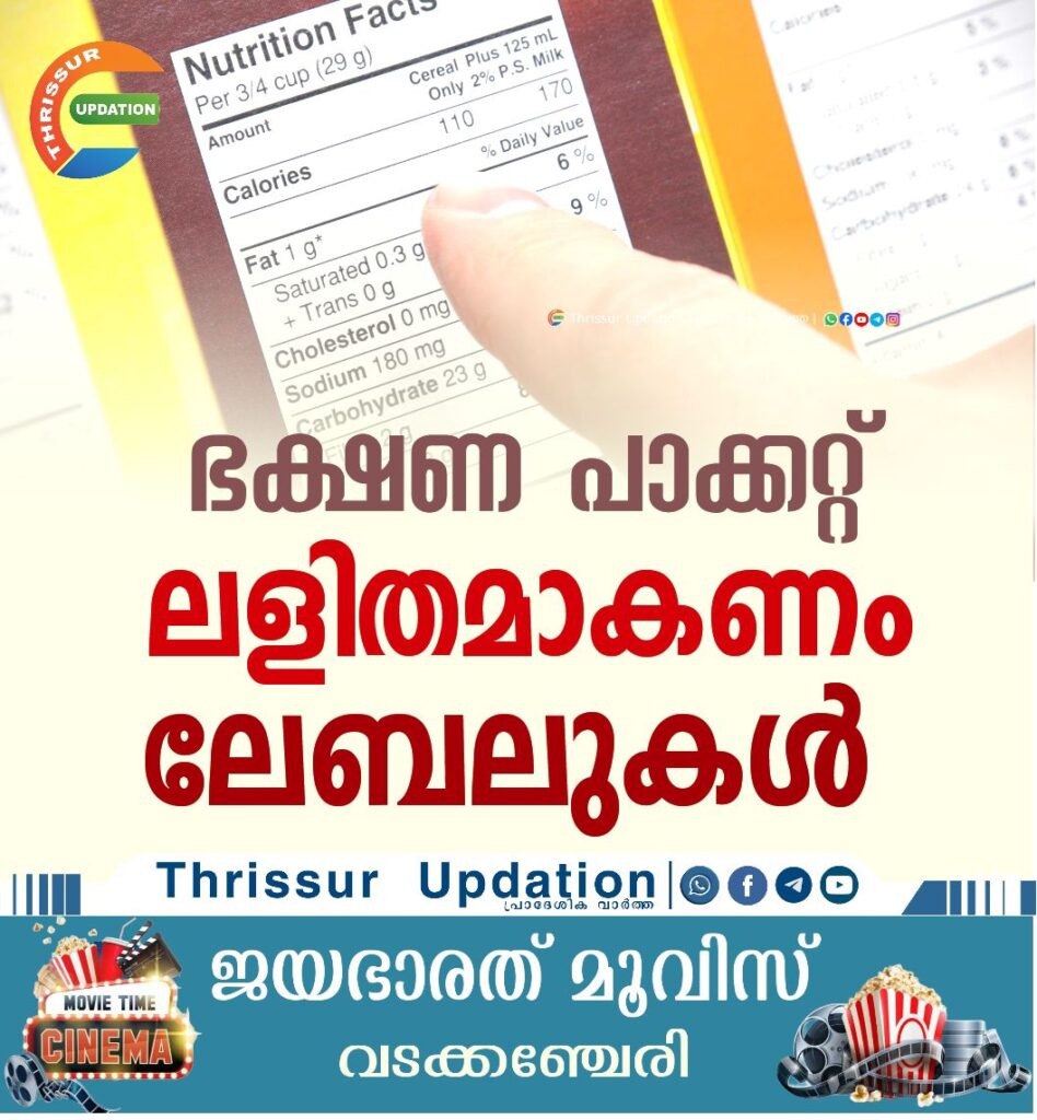 ഭക്ഷണ പാക്കറ്റുകളിലെ ലേബലുകൾ ലളിതമാക്ക ണമെന്നു ഭക്ഷ്യ സുരക്ഷാ പാർലമെൻ്ററി സമിതി ആവശ്യപ്പെട്ടു. നിലവിലെ ലേബലുകൾ ജനത്തിന് ആശയക്കുഴപ്പ മുണ്ടാക്കും. പലർക്കും ഇംഗ്ലിഷിൽ പ്രാവീണ്യമില്ലാത്തതിനാൽ പ്രാദേശിക ഭാഷകളിൽ ലേബലുകൾ ലഭ്യമാക്കണമെന്നും സമിതി നിർദേശിക്കുന്നു.