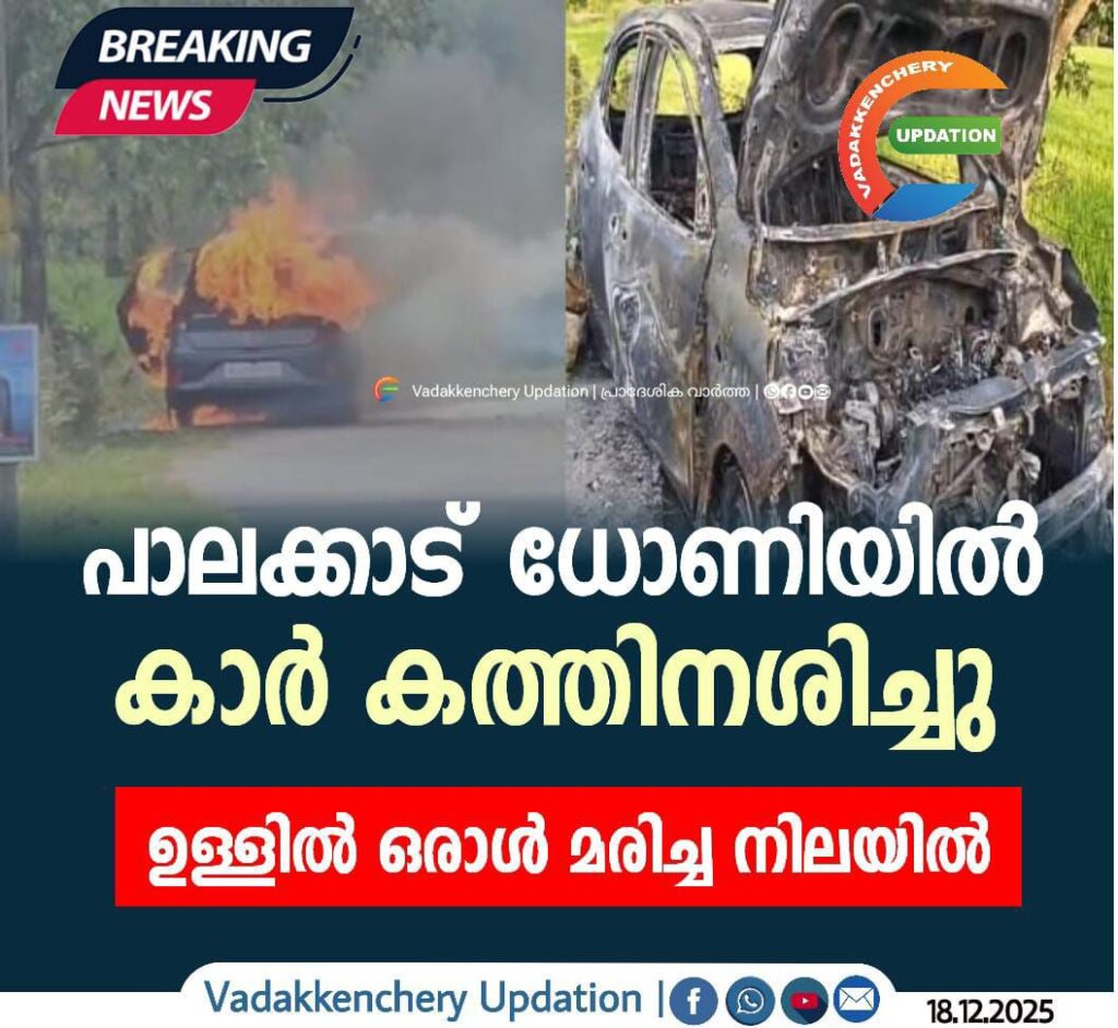 പാലക്കാട് ധോണിയിൽ കാർ കത്തി ഒരു മരണം. ഇന്ന് വൈകീട്ട് നാല് മണിയോടെയാണ് റോഡരികിൽ കാർ കത്തിയത്. നാട്ടുകാരും അഗ്നിരക്ഷാസേനയുമെത്തി തീ അണയ്ക്കുകയായിരുന്നു. മുണ്ടൂർ വേലിക്കാട് റോഡിലാണ് സംഭവം.കാർ പൂർണമായി കത്തിനശിച്ചിട്ടുണ്ട്. മുണ്ടൂർ വേലിക്കാട് സ്വദേശിയുടെതാണ് കാർ. ആരാണ് കാറിനകത്ത് ഉണ്ടായിരുന്നതെന്ന് വ്യക്തമല്ല.ഫോറൻസിക് വിദഗ്ദർ ഉൾപ്പെടെയുള്ളവർ സ്ഥലത്തെത്തിയിട്ടുണ്ട്. ആത്മഹത്യയാണോ എന്നകാര്യം പൊലീസ് ഉദ്യോഗസ്ഥർ വിശദമായി പരിശോധിക്കുകയാണ്.