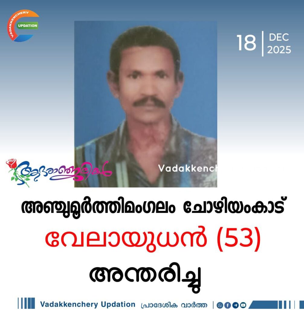 അഞ്ചുമൂർത്തിമംഗലം ചോഴിയംകാട് വേലായുധൻ (53) അന്തരിച്ചു .സംസ്ക്കാരം നാളെ (19-12-2025-വെള്ളി)