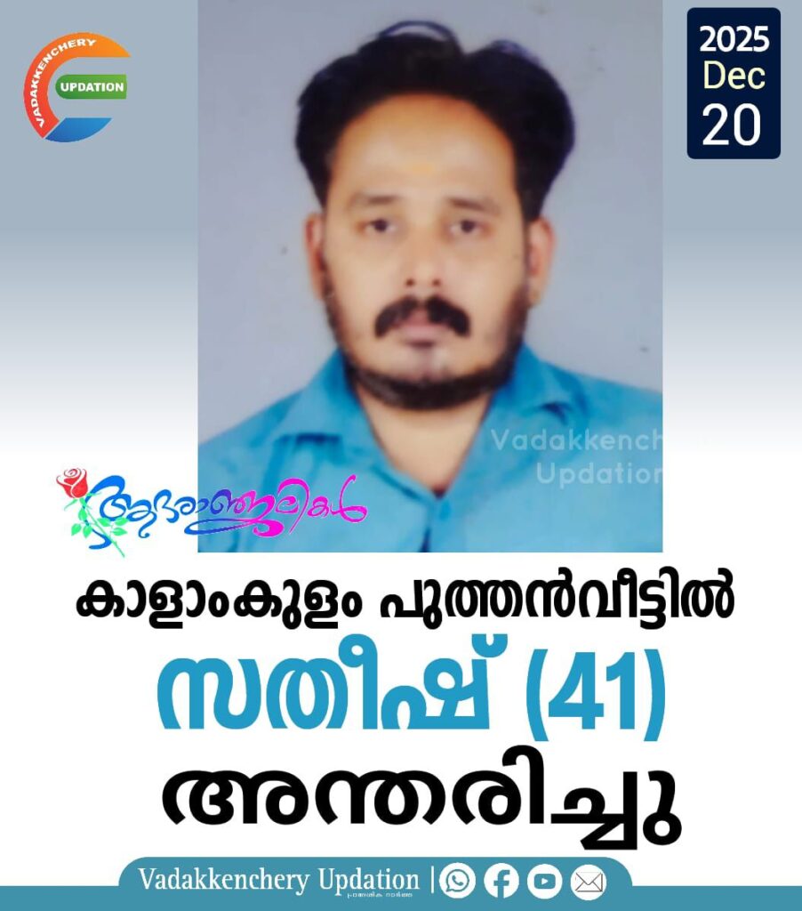 കാളാംകുളം പുത്തൻവീട്ടിൽ പരേതനായ സഹദേവൻ മകൻ സതീഷ് (41) അന്തരിച്ചു