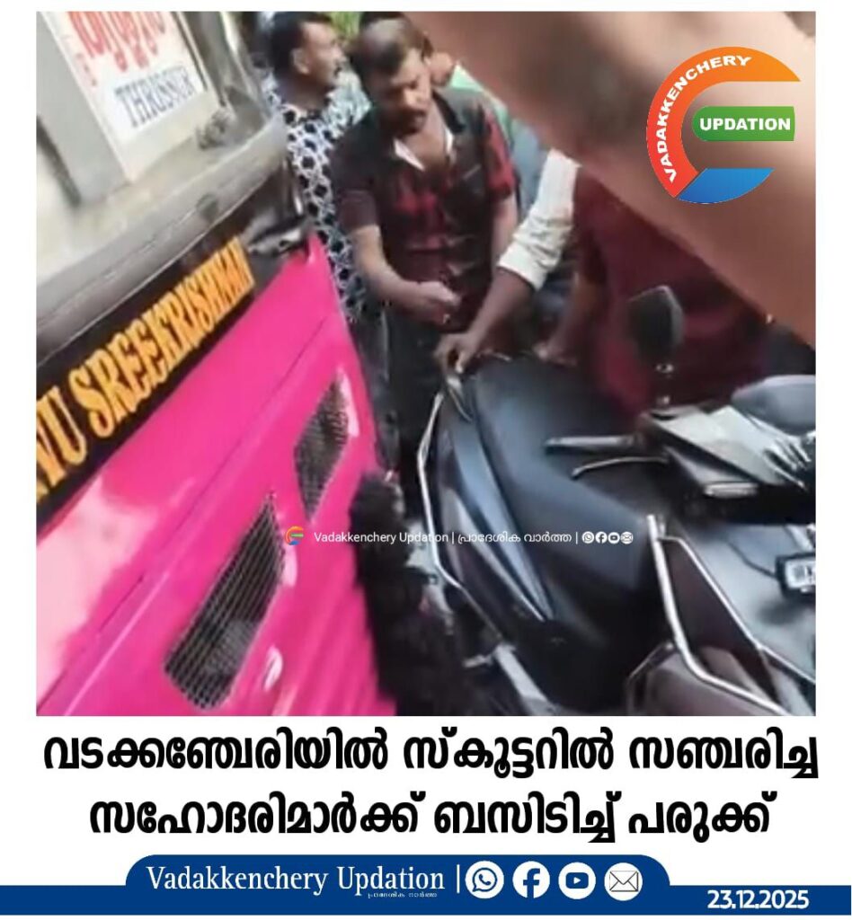 വടക്കഞ്ചേരിയിൽ ബസിടിച്ച് സ്കൂട്ടർ യാത്രക്കാരായ സഹോദരിമാർക്കു പരിക്ക്. കിഴക്കഞ്ചേരി കളവപ്പാടം മുതിയൻപറ്റ വീട്ടിൽ ഗീതു(24) സഹോദരി നീതു (26) എന്നിവർക്കാണു പരുക്കേറ്റത്. ഗീതുവിന്റെ കാലൊടിഞ്ഞു നീതുവിനും കാലിനാണു പരുക്ക്.ഇരുവരെയും ഇരട്ടക്കുളത്തെ സ്വകാര്യ ആശുപത്രിയിൽ പ്രവേശിപ്പിച്ചു ശിവരാമ പാർക്കിനു മുൻവശത്തായി ഇന്നലെ വൈകിട്ട് അഞ്ചരയോടെയാണ് അപകടം.