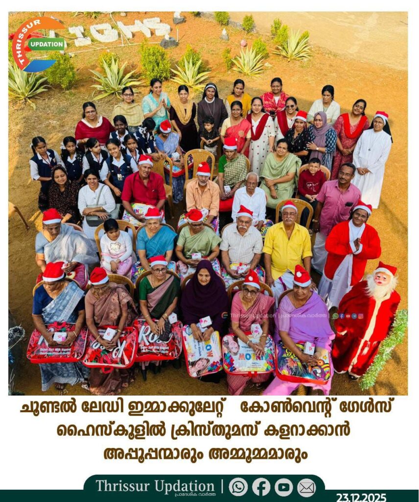 ചൂണ്ടൽ ലേഡി ഇമ്മാക്കുലേറ്റ് കോൺവെന്റ് ഗേൾസ് ഹൈസ്കൂളിൽ ക്രിസ്തുമസ് ആഘോഷങ്ങൾക്ക് മാറ്റുകൂട്ടാൻ അപ്പൂപ്പന്മാരും അമ്മൂമ്മമാരും എത്തിച്ചേർന്നു. പേരക്കുട്ടികളുടെ വിദ്യാലയങ്ങളിൽ ആടിയും പാടിയും ക്രിസ്തുമസ് മധുരം നുണഞ്ഞും അവർ ക്രിസ്തുമസ് ആഘോഷിച്ചു. പ്രധാനാദ്ധ്യാപിക സിസ്റ്റർ മരിയ ഗ്രെയ്സ് ക്രിസ്തുമസ്സിന്റെ ശാന്തിയും ത്യാഗവും സമാധാനവും ഉൾക്കൊള്ളുന്ന സന്ദേശം നൽകി. വിദ്യാലയാങ്കണത്തിൽ എത്തിച്ചേർന്ന അപ്പൂപ്പൻമാരെയും അമ്മൂമ്മമാരെയും കരോൾ ഗാനങ്ങൾ പാടി അധ്യാപകർ ഹൃദ്യമായി വരവേറ്റു. ഗാനമാലപിച്ചും വിദ്യാലയനുഭവങ്ങൾ പങ്കുവെച്ചും വാർദ്ധക്യത്തിലും ബാല്യത്തിന്റെ പ്രസരിപ്പുമായി എത്തിച്ചേർന്ന അവരെ പി ടി എ ക്രിസ്തുമസ് സമ്മാനങ്ങൾ നൽകി ആദരിച്ചു . പിടിഎ പ്രസിഡന്റ് ഷക്കീർ എ കെ, എം പിടിഎ പ്രസിഡന്റ് സിമി ബിജു സി. സോണി എന്നിവർ സന്നിഹിതരായിരുന്നു.