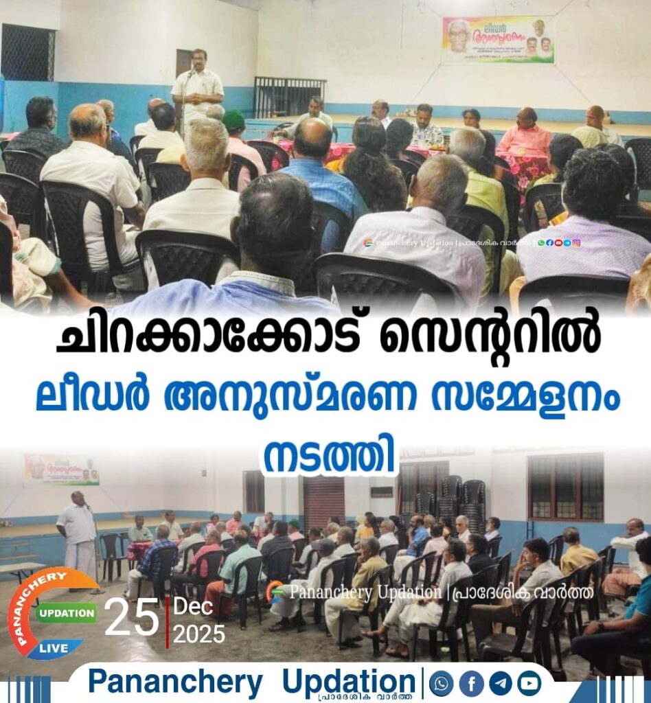 ലീഡർ സാംസ്കാരിക വേദിയുടെ നേതൃത്വത്തിൽ ചിറക്കാക്കോട് സെന്ററിൽ സംഘടിപ്പിച്ച ലീഡർ അനുസ്മരണ സമ്മേളനം ഏറെ ശ്രദ്ധേയമായി. കഴിഞ്ഞ 15 വർഷമായി ഒരു സാഹചര്യത്തിലും മുടക്കം കൂടാതെ ലീഡറുടെ ഓർമ്മദിനം ആചരിച്ചു വരുന്നു. സമ്മേളനത്തിൽ മുഖ്യ അതിഥിയായി ഡി.സി.സി.ജനറൽ സെക്രട്ടറിയും തൃശ്ശൂർ ജില്ലാ സഹകരണ ആശുപത്രി ചെയർമാനുമായ ടി.കെ. പൊറിഞ്ചു പങ്കെടുത്തു. ലീഡറുമായി ബന്ധപ്പെട്ട തന്റെ ഓർമ്മകൾ ഹൃദയസ്പർശിയായ രീതിയിൽ അദ്ദേഹം സദസ്സിൽ പങ്കുവെച്ചപ്പോൾ, സദസ്സിനെ ലീഡറുടെ കാലഘട്ടത്തിലേക്ക് കൂട്ടിക്കൊണ്ടുപോയ അനുഭവമായിരുന്നുവെന്ന് പങ്കെടുത്തവർ അഭിപ്രായപ്പെട്ടു.