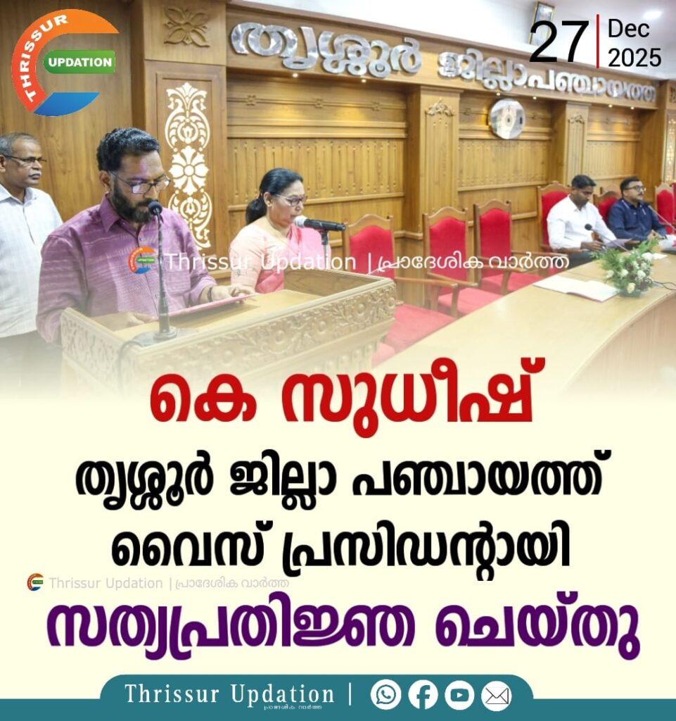 തൃശ്ശൂര് ജില്ലാ പഞ്ചായത്ത് വൈസ് പ്രസിഡന്റായി ടി.കെ സുധീഷ് തിരഞ്ഞെടുക്കപ്പെട്ടു. ജില്ലാ പഞ്ചായത്ത് കോണ്ഫറന്സ് ഹാളില് നടന്ന തിരഞ്ഞെടുപ്പില് ആകെ പോള് ചെയ്ത 30 വോട്ടുകളില് 21 വോട്ടുകളും നേടിയാണ് ടി.കെ സുധീഷ് വൈസ് പ്രസിഡന്റ് സ്ഥാനത്തെത്തിയത്. ഫലപ്രഖ്യാപനത്തിന് ശേഷം ജില്ലാ പഞ്ചായത്ത് പ്രസിഡന്റ് മേരി തോമസ് വൈസ് പ്രസിഡന്റിന് സത്യവാചകം ചൊല്ലിക്കൊടുത്തു. വരണാധികാരിയായ ജില്ലാ കളക്ടര് അര്ജുന് പാണ്ഡ്യന് തിരഞ്ഞെടുപ്പ് നടപടിക്രമങ്ങള്ക്ക് നേതൃത്വം നല്കി.
