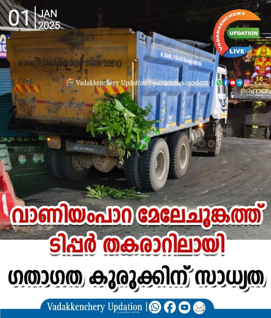 വാണിയംപാറ മേലേചുങ്കത്ത് ടിപ്പർ തകരാറിലായി ; ഗതാഗത കുരുക്കിന് സാധ്യത