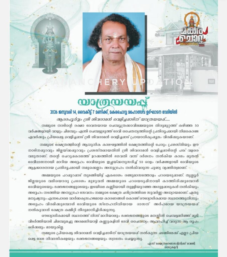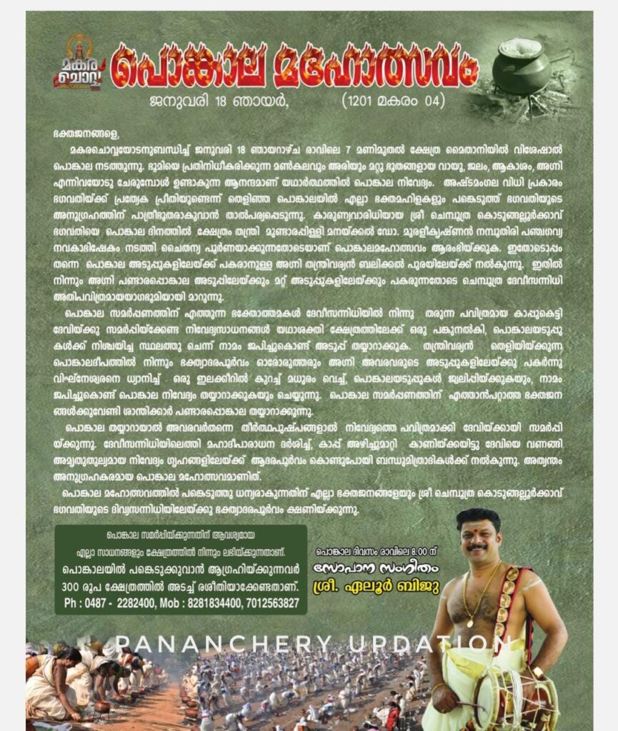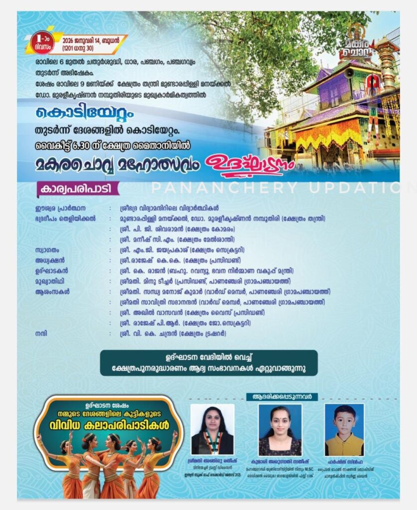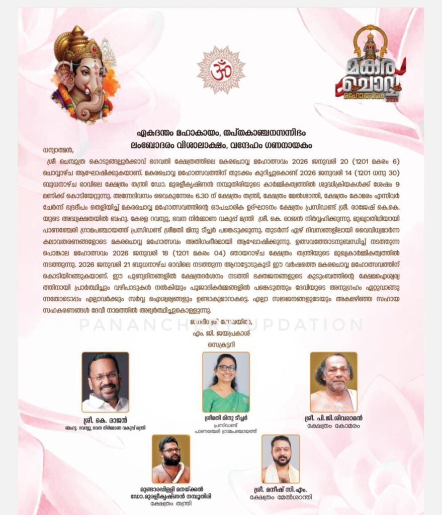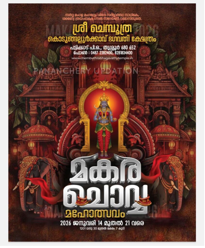 ശ്രീ ചെമ്പൂത്ര കൊടുങ്ങല്ലൂർക്കാവ് ഭഗവതി ക്ഷേത്രത്തിലെ മകരചൊവ മഹോത്സവം ജനുവരി 14 മുതൽ 21 വരെ നടത്തുന്നു . മകരചൊവ്വ മഹോത്സവം 2026 ജനുവരി 20 ചൊവ്വാഴ്ച ആഘോഷിക്കുന്നു. മകരചൊവ്വ മഹോത്സവത്തിന് തുടക്കം കുറിച്ചുകൊണ്ട് 2026 ജനുവരി 14 ബുധനാഴ്ച രാവിലെ ക്ഷേത്രം തന്ത്രി ഡോ. മുരളീകൃഷ്ണൻ നമ്പൂതിരിയുടെ കാർമ്മികത്വത്തിൽ ശുദ്ധിക്രിയകൾക്ക് ശേഷം 9 മണിക്ക് കൊടിയേറ്റുന്നു. അന്നേദിവസം വൈകുന്നേരം 6.30 ന് ക്ഷേത്രം തന്ത്രി, ക്ഷേത്രം മേൽശാന്തി, ക്ഷേത്രം കോമരം എന്നിവർ ചേർന്ന് ഭദ്രദീപം തെളിയിച്ച് മകരചൊവ്വ മഹോത്സവത്തിൻ്റെ ഔപചാരിക ഉദ്ഘാടനം ക്ഷേത്രം പ്രസിഡൻ്റ് രാജേഷ് കെ.കെ. യുടെ അദ്ധ്യക്ഷതയിൽ കേരള റവന്യൂ, ഭവന നിർമ്മാണ വകുപ്പ് മന്ത്രി കെ. രാജൻ നിർവ്വഹിക്കുന്നു. മുഖ്യാതിഥിയായി പാണഞ്ചേരി ഗ്രാമപഞ്ചായത്ത് പ്രസിഡൻ്റ് മിനു ടീച്ചർ പങ്കെടുക്കുന്നു. തുടർന്ന് ഏഴ് ദിവസങ്ങളിലായി വൈവിധ്യമാർന്ന കലാവതരണങ്ങളോടെ മകരചൊവ്വ മഹോത്സവം അതിഗംഭീരമായി ആഘോഷിക്കുന്നു. ഉത്സവത്തോടനുബന്ധിച്ച് നടത്തുന്ന പൊങ്കാല മഹോത്സവം 2026 ജനുവരി 18 ഞായറാഴ്ച ക്ഷേത്രം തന്ത്രിയുടെ മുഖ്യകാർമ്മികത്വത്തിൽ നടത്തുന്നു. 2026 ജനുവരി 21 ബുധനാഴ്ച രാവിലെ നടത്തുന്ന ആറാട്ടോടുകൂടി ഈ വർഷത്തെ മകരചൊവ്വ മഹോത്സവത്തിന് കൊടിയിറങ്ങും
