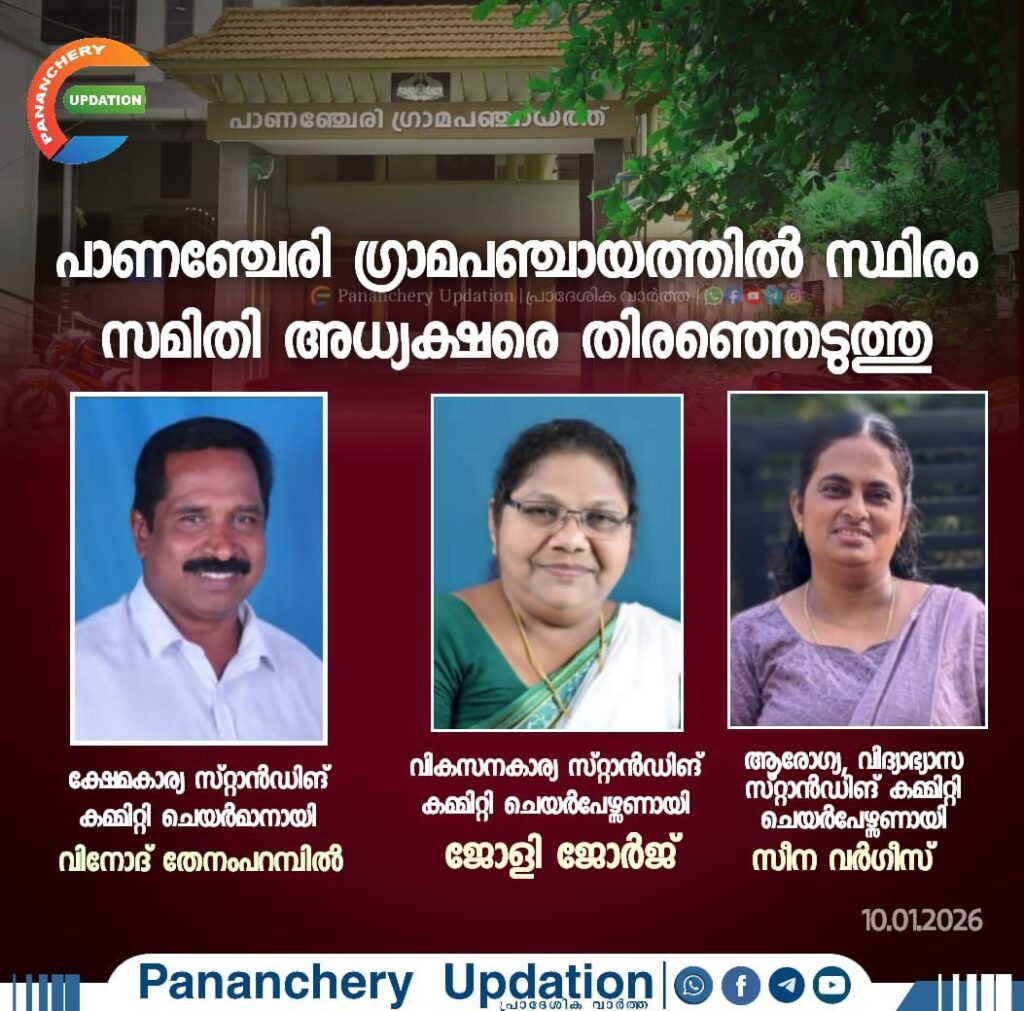 പാണഞ്ചേരി ഗ്രാമപഞ്ചായത്തിൽ സ്ഥിരം സമിതി അധ്യക്ഷരെ തിരഞ്ഞെടുത്തു