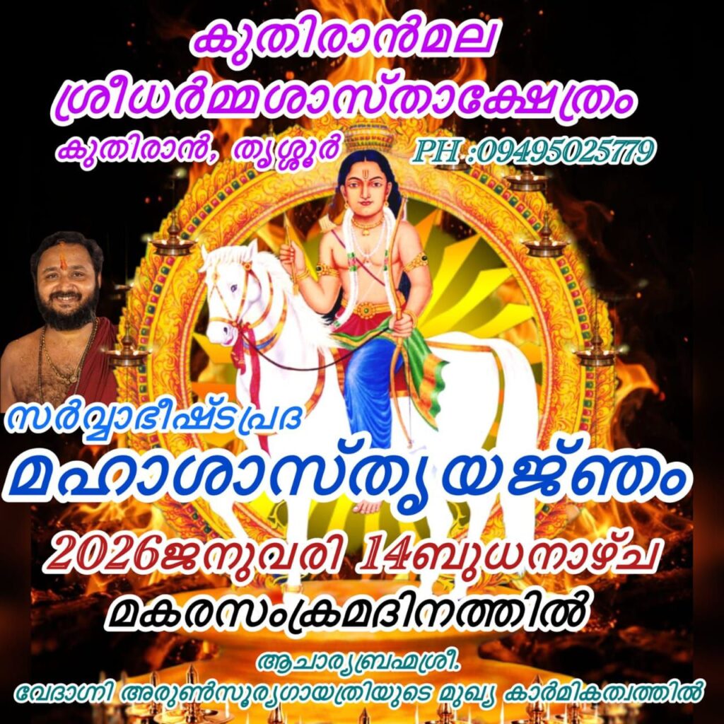 എല്ലാവരോടും ക്ഷമ ചോദിച്ചുകൊണ്ട് 18/01 നു നടത്താൻ നിശ്ചയിച്ചിരുന്ന മഹാ ശാസ്ത്തൃ യജ്ഞ്ഞം 14/01 നു മകരവിളക്ക് ദിവസം നടത്തുന്നു.