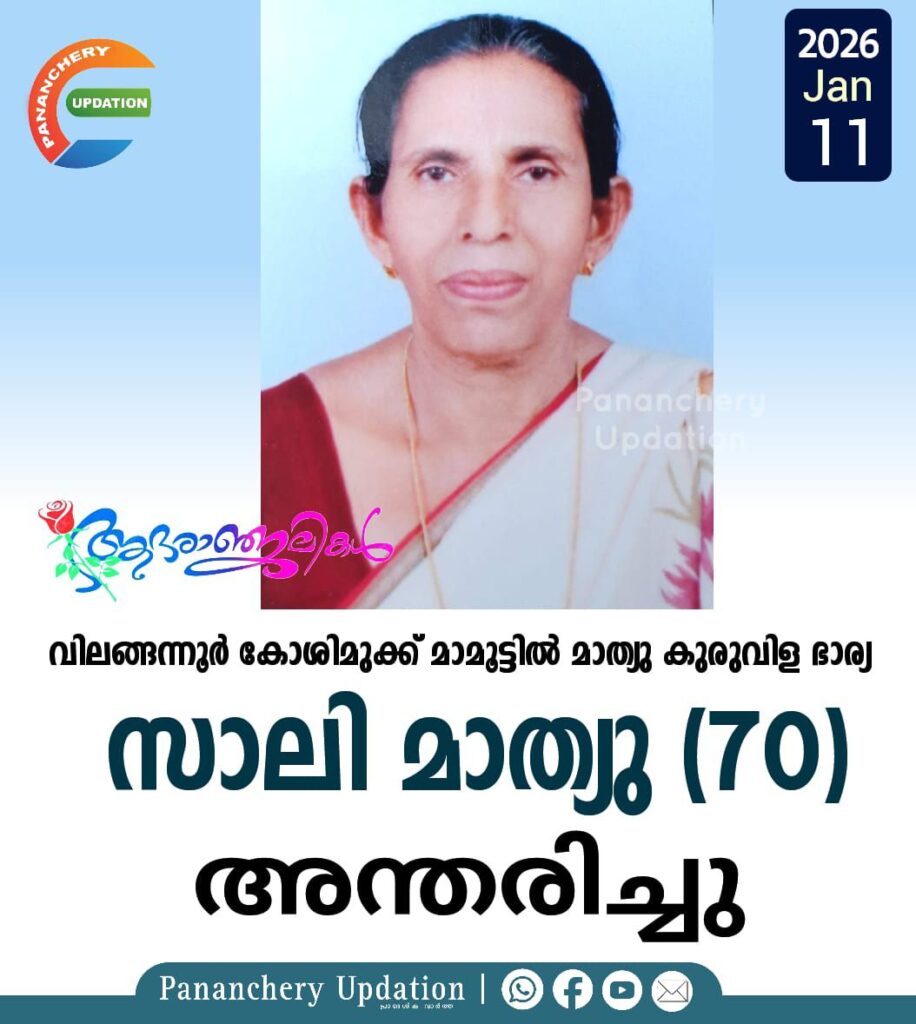 വിലങ്ങന്നൂർ കോശിമുക്ക് മാമൂട്ടിൽ മാത്യു കുരുവിള ഭാര്യ സാലി മാത്യു (70) അന്തരിച്ചു.