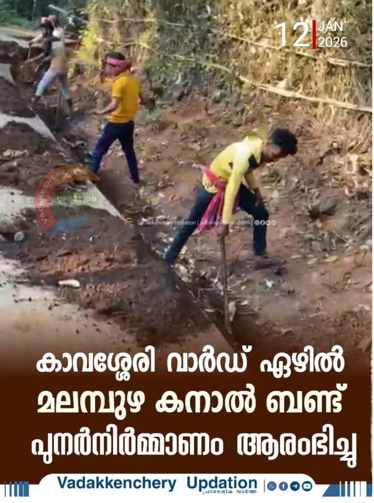 കാവശ്ശേരിഗ്രാമപഞ്ചായത്തിലെ വാർഡ് ഏഴിൽ കഴിഞ്ഞ അഞ്ച് വർഷത്തോളമായി അടഞ്ഞുകിടന്നിരുന്ന മലമ്പുഴ കനാൽ വീണ്ടും പ്രവർത്തനക്ഷമമാക്കുന്നതിനുള്ള പ്രവർത്തനങ്ങൾ ആരംഭിച്ചു. നാട്ടുകാരുടെയും ജനപ്രതിനിധികളുടെയും സജീവ പങ്കാളിത്തത്തോടെയാണ് കനാൽ ബണ്ട് പുനർനിർമ്മാണ പ്രവർത്തനങ്ങൾ പുരോഗമിക്കുന്നത്.