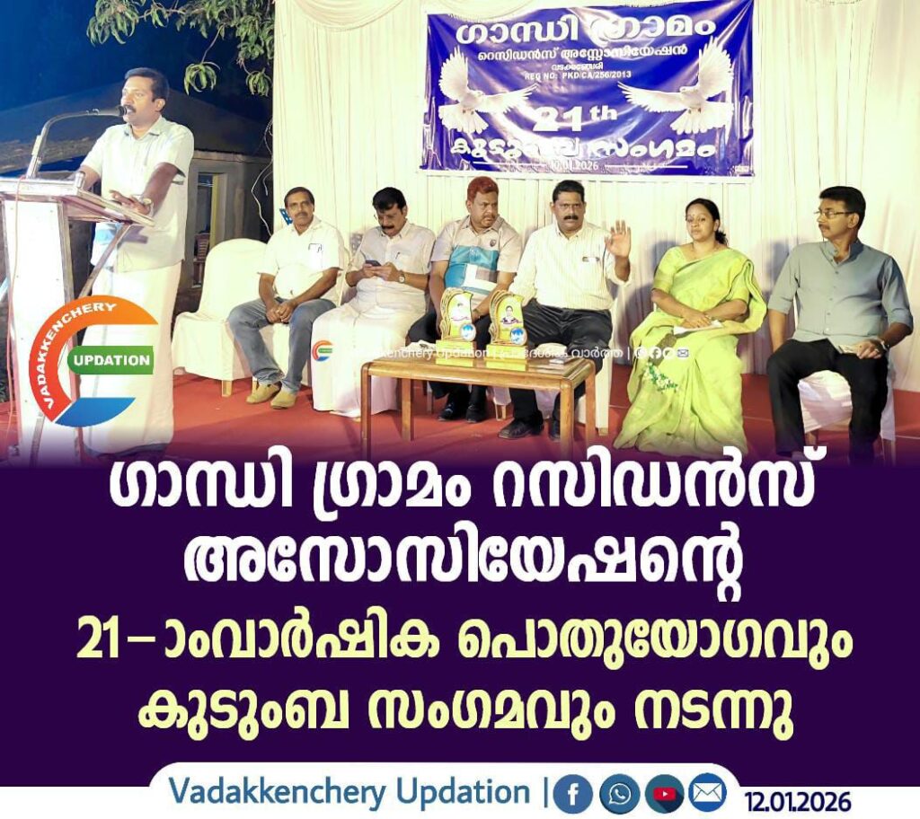 ദേശീയപാതയിലെ സർവീസ് റോഡുകളിലെ അനധികൃത പാർക്കിംഗ് നിയന്ത്രിക്കണമെന്നും, ടാർ മിക്സിങ് പ്ലാന്റിന്റെ പ്രവർത്തനം നിർത്താൻ അധികൃതർ നടപടി സ്വീകരിക്കണമെന്നും ഗാന്ധി ഗ്രാമം റസിഡൻസ് അസോസിയേഷൻ വാർഷിക പൊതുയോഗം ആവശ്യപ്പെട്ടു അസോസിയേഷന്റേ 21-ാം വാര്ഷികവും, കുടുംബ സംഗവമവും വടക്കഞ്ചേരി ഗ്രാമപ്പഞ്ചായത്ത് പ്രസിഡന്റ് സി. പ്രസാദ് ഉദ്ഘാടനം ചെയ്തു. ചടങ്ങില് അസോസിയേഷന് പ്രസിഡന്റ് ബെന്നി വര്ഗീസ് അധ്യക്ഷനായി. വടക്കഞ്ചേരി ഗ്രാമപ്പഞ്ചായത്തംഗം ദിപ ബൈജു, അസോസിയേഷന് സെക്രട്ടറി പി.കെ.ബാബു, വ്യാപാരി വ്യവസായി ഏകോപന സമിതി വടക്കഞ്ചേരി യൂണിറ്റ് പ്രസിഡന്റ് കെ.എം.ജലീല്, മുന് പ്രസിഡന്റ് കെ.കെ.ജ്യോതികുമാര്, ട്രഷറര് ടി.എന്.രാജേന്ദ്രന് തുടങ്ങിയവർ സംസാരിച്ചു. ചടങ്ങിൽ കലാ കായിക മേഖലയിലെ മികവു തെളിയിച്ച വിദ്യാര്ഥികളെ അനുമോദിക്കലും. കലാപരിപാടിയും ഉണ്ടായി