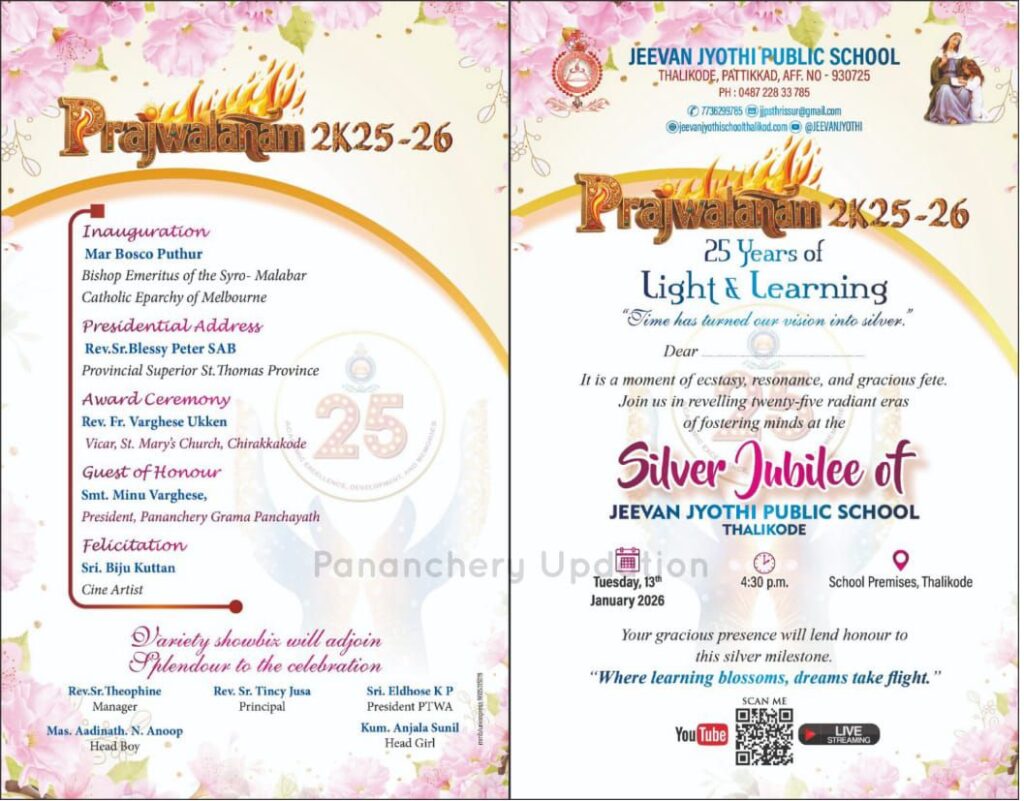 താളിക്കോട് ജീവൻ ജ്യോതി പബ്ലിക് സ്കൂളിന്റെ സിൽവർ ജൂബിലി ആഘോഷം ഇന്ന് വൈകീട്ട് 4.30ന് ആരംഭിക്കും.
