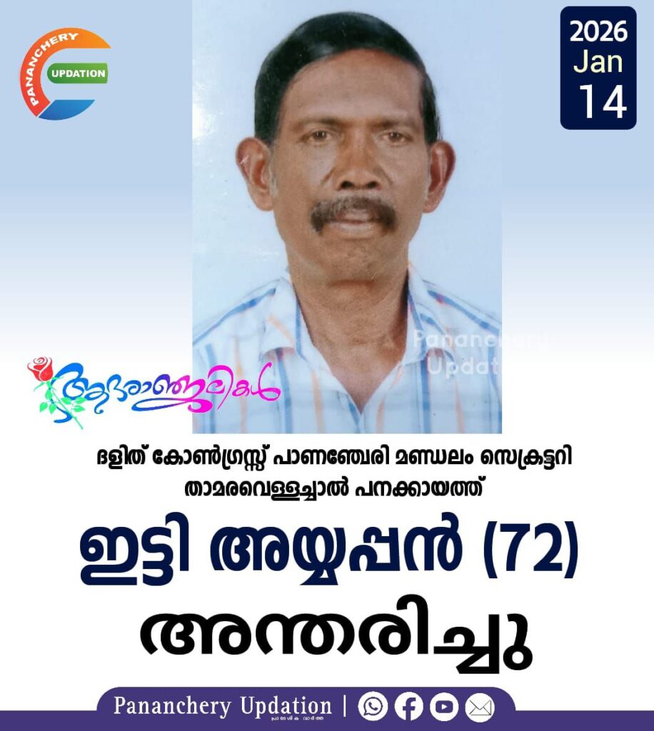 ദളിത് കോൺഗ്രസ്സ് പാണഞ്ചേരി മണ്ഡലം സെക്രട്ടറി താമരവെള്ളച്ചാൽ പനക്കായത്ത് ഇട്ടി അയ്യപ്പൻ (72) അന്തരിച്ചു