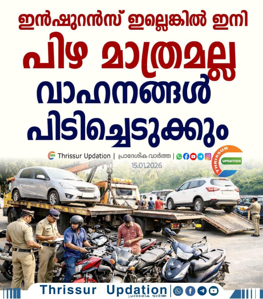 ഇൻഷുറൻസ് ഇല്ലെങ്കിൽ ഇനി പിഴ മാത്രമല്ല; വാഹനങ്ങൾ പിടിച്ചെടുക്കും