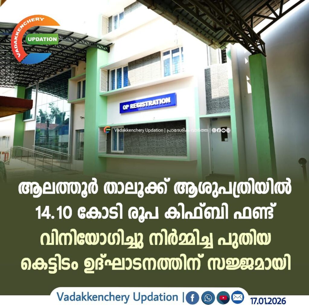 ആലത്തൂർ താലൂക്ക് ആശുപത്രിയിൽ 14.10 കോടി രൂപ കിഫ്ബി ഫണ്ട് വിനിയോഗിച്ചു നിർമ്മിച്ച പുതിയ കെട്ടിടം ഉദ്ഘാടനത്തിന് സജ്ജമായി.