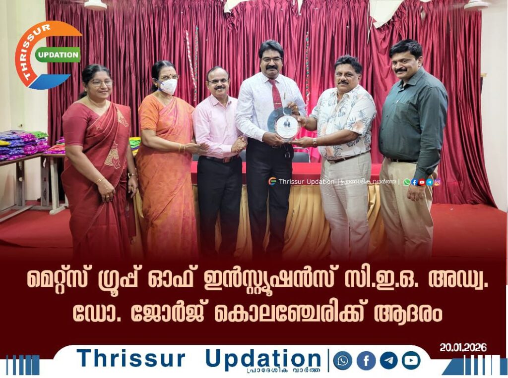 മെറ്റ്സ് ഗ്രൂപ്പ് ഓഫ് ഇൻസ്റ്റ്യൂഷൻസ് സി.ഇ.ഒ. അഡ്വ. ഡോ. ജോർജ് കൊലഞ്ചേരിക്ക് ആദരം