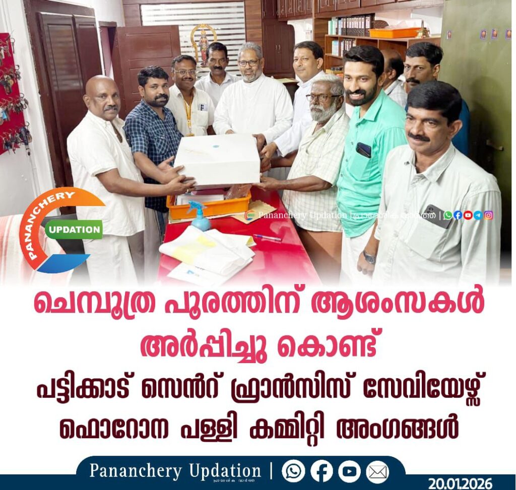 ചെമ്പൂത്ര പൂരത്തിന് ആശംസകൾ അർപ്പിച്ചു കൊണ്ട് പട്ടിക്കാട് സെൻറ് ഫ്രാൻസിസ് സേവിയേഴ്സ് ഫൊറോന പള്ളി കമ്മിറ്റി അംഗങ്ങൾ