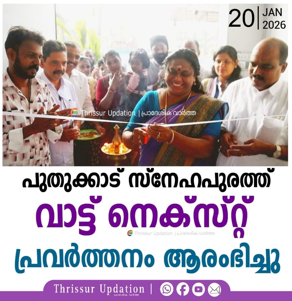 പുതുക്കാട് സ്നേഹപുരത്ത് പരസ്യ മേഖലയും, ഓൺലൈൻ ഓഫ്ലൈൻ മേഖലകളെയും കോർത്തിണക്കി വാട്ട് നെക്സ്റ്റ് എന്ന സ്ഥാപനം പ്രവർത്തനം ആരംഭിച്ചു. മുൻ പഞ്ചായത്ത് പ്രസിഡന്റ്, എസ്.എൻ.ഡി.പി. പുതുക്കാട് യൂണിയൻ ഡയറക്ട് ബോർഡ് അംഗവുമായ കെ.എം. ബാബുരാജ് ചടങ്ങിന് ഭദ്രദീപം തെളിയിച്ചു. പുതുക്കാട് പഞ്ചായത്ത് പ്രസിഡൻ്റ് രതി ബാബു സംരംഭം ഉദ്ഘാടനം ചെയ്തു. സ്നേഹപുരം സെന്റ് ജോസഫ് ചർച്ച് വികാരി റവ. ഫാദർ ആന്റണി മേനാച്ചേരി ആശീർവാദകർമ്മം നിർവഹിച്ചു. ക്ലബ് എഫ്.എം. ആർ.ജെ. വിനീത് ചടങ്ങിന് വിശിഷ്ടാതിഥിയായി. പുതുക്കാട് പഞ്ചായത്ത് വിദ്യാഭ്യാസ ആരോഗ്യ സ്റ്റാന്റിംഗ് കമ്മിറ്റി ചെയർപേഴ്സനും വാർഡ് മെമ്പറുമായ ശ്രീജ രാജേഷ് അദ്ധ്യക്ഷത വഹിച്ചു. പുതുക്കാട് പഞ്ചായത്ത് ജനപ്രതിനിധികളായ ബേബി കീടായിൽ, ജോയ് മഞ്ഞളി, എൻ.വൈ.സി. തൃശ്ശൂർ ജില്ല പ്രസിഡന്റ് സഞ്ജു കാട്ടുങ്ങൽ, യൂത്ത് മൂവ്മെന്റ് എസ്.എൻ.ഡി.പി. യോഗം പുതുക്കാട് യൂണിയൻ പ്രസിഡന്റ് ശരത് വിഷ്ണു പെരുമറത്ത് എന്നിവർ ആശംസകൾ നേർന്നു. സ്ഥാപക ഉടമ നിഗിൽ വൈക്കത്താടൻ ചടങ്ങിന് നേതൃത്വം വഹിച്ച അംഗങ്ങൾക്ക് പൊന്നാടയണിഞ്ഞു ശേഷം നന്ദി രേഖപ്പെടുത്തി.