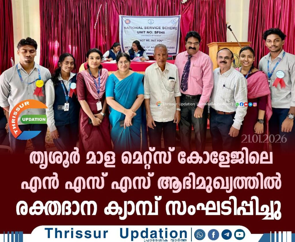 തൃശൂർ മാള മെറ്റ്സ് കോളേജിലെ എൻ എസ് എസ് ആഭിമുഖ്യത്തിൽ രക്തദാന ക്യാമ്പ് സംഘടിപ്പിച്ചു.