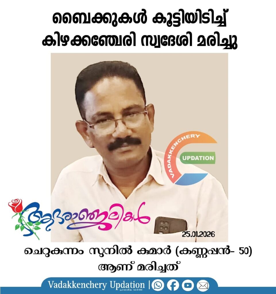 ബൈക്കുകൾ കൂട്ടിയിടിച്ച് കിഴക്കഞ്ചേരി സ്വദേശി മരിച്ചു
